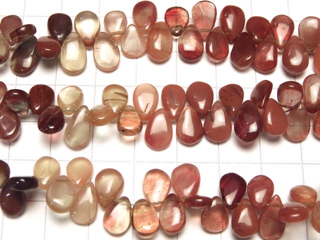 モンゴル産アンデシンのペアシェイプビーズです。 透明度が高く、濃淡差のある粒やバイカラーの粒など1連のなかで様々な粒が見られます。