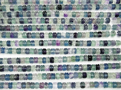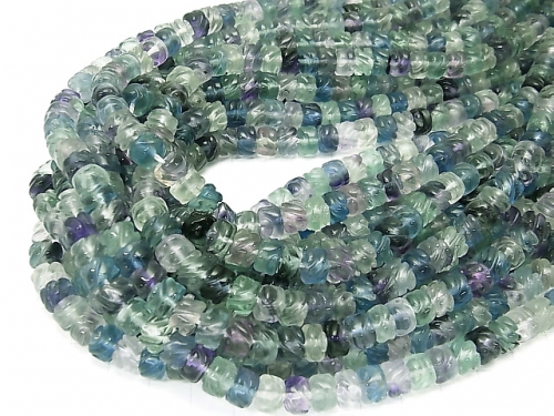 マルチカラーフローライトAAA 彫刻入りロンデル(ヘイシ)8×8×6mm 半連/1連(約38cm)