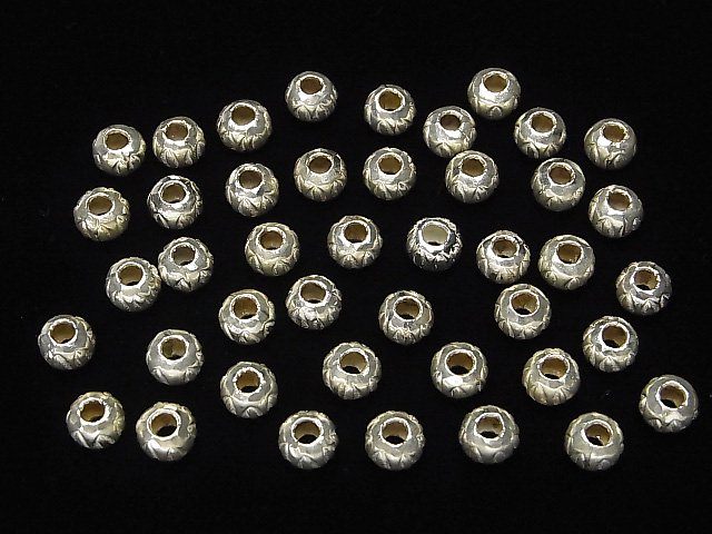 カレンシルバー 模様入りロンデル7×7×5.5mm ホワイトシルバー 2個