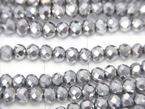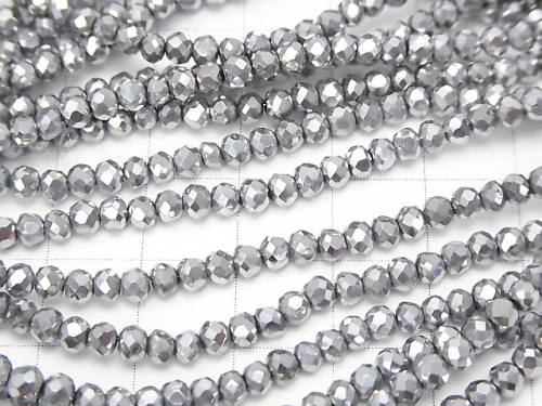ガラスビーズ ボタンカット3.5×3.5×3mm シルバー 1連(約32cm)
