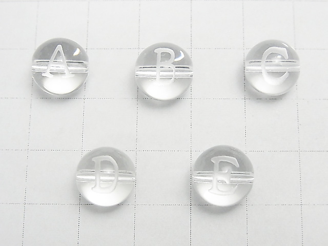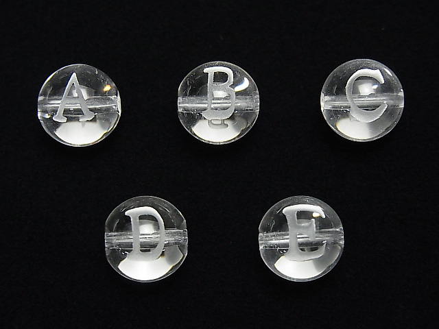 【動画】アルファベット(活字体)の彫刻入り!クリスタルAAA ラウンド10mm 【A・B・C・D・E】 2粒