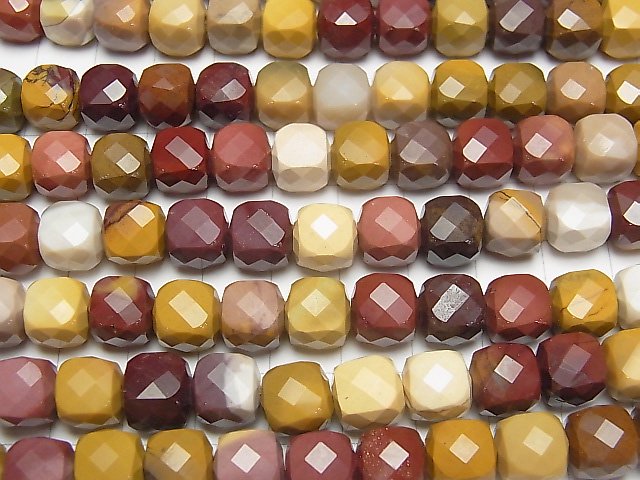 美しいムーアカイト(モーカイト)のキューブカット形状です。 渋めの黄色・赤などから茶色、ベージュ系のピンク色まで様々な色合いのミックスカラーです。 静止画の方が現物に近い色合いです。画像と合わせてご検討ください。