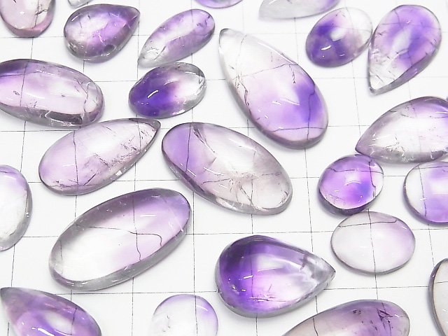 【動画】バイカラーアメジストAAA- ミックスシェイプ カボション 5個