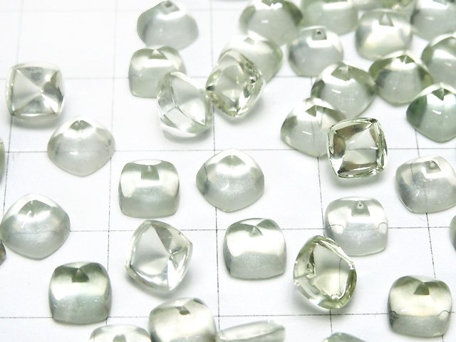 【動画】宝石質グリーンアメジストAAA シュガーローフカット6×6mm 4個