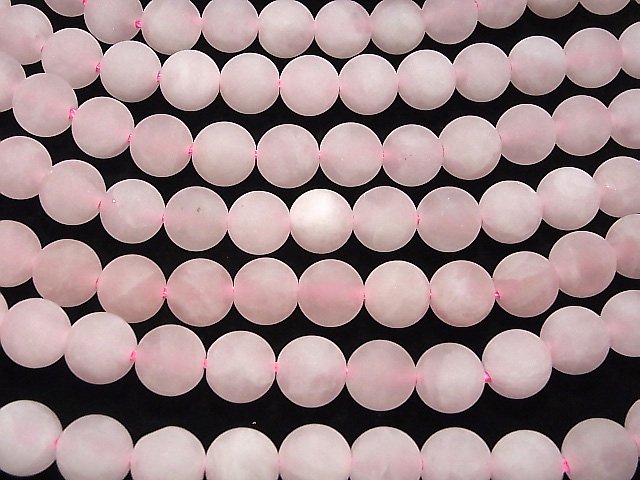 フロスト(艶消し)加工を施したローズクォーツのラウンドビーズです。 マットな色合いが優しくソフトな印象です。 当店オリジナル品です。