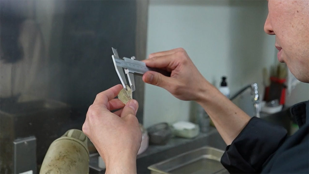 そのため職人は、顕微鏡ではなく“目と指先”で石の性質を見極めます。わずかな温度差や力加減を感じ取り、石が望む形へと導いていく――そこには、自然と人との対話があります。